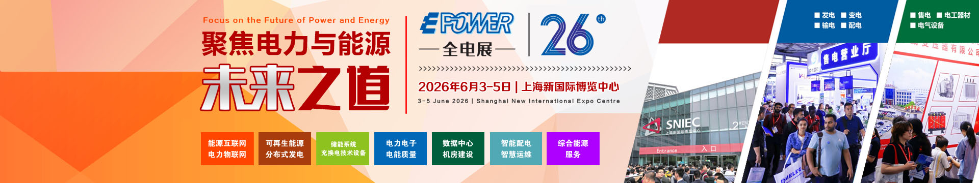 為促進電力能源全產業鏈、全價值鏈協同創新,推動“雙鏈”融合,「EPOWER第26屆全電展」26屆上海國際新型電力裝備展覽會,將于2026年6月3-5日在上海新國際博覽中心舉辦。展會聚焦電力能源未來之道,搭建產業生態平臺,集中呈現發電、輸電、變電、配電、用電、調度、通信等環節新產品、新技術、新應用,助力電力裝備高質量發展。